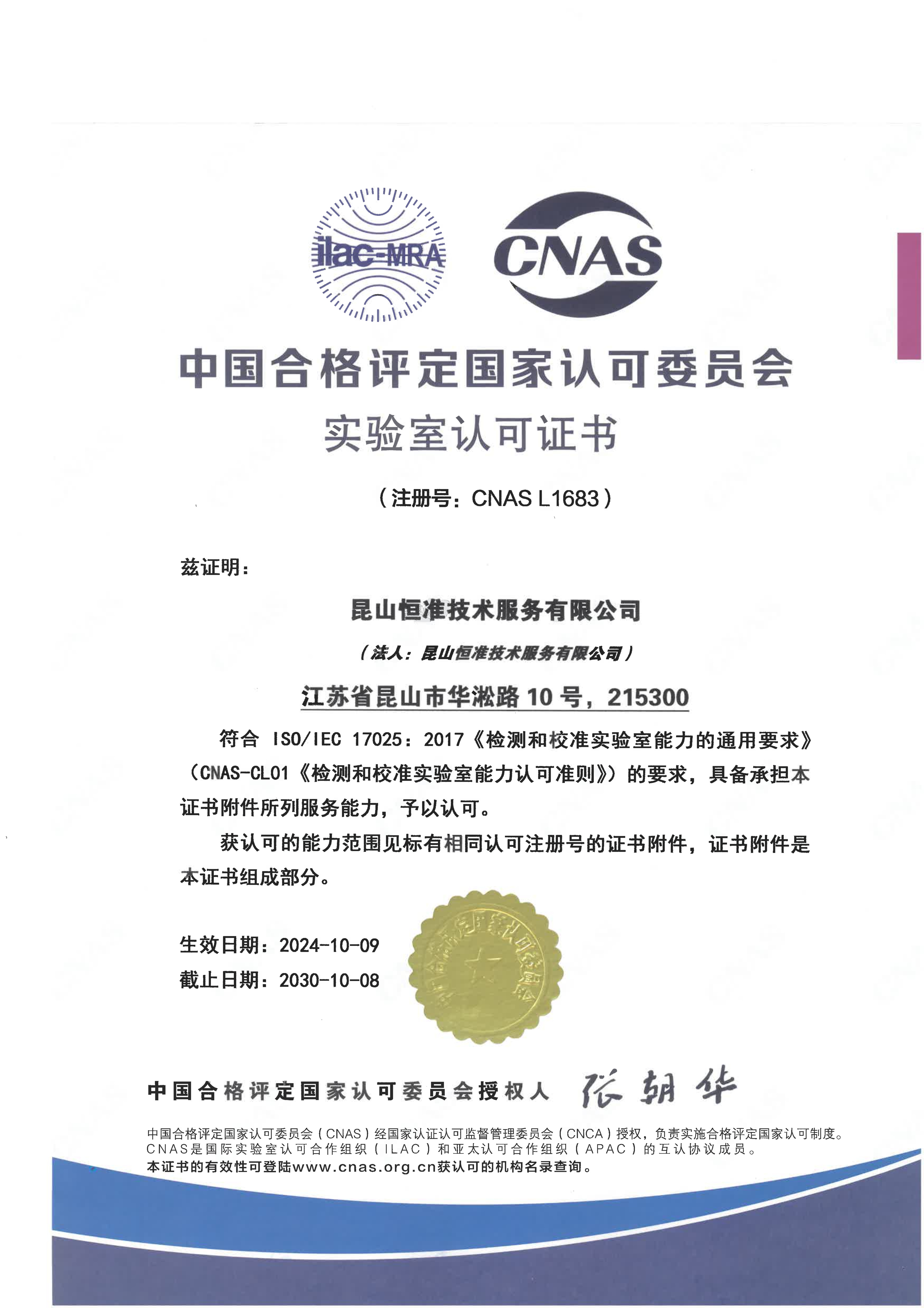 我司實驗室為中國合格評定國家認可委員會CNAS認可實驗室,校準、檢測之管理技術均符合ISO/IEC 17025的要求,并承諾持續的改善管理體系和提升客戶滿意度。